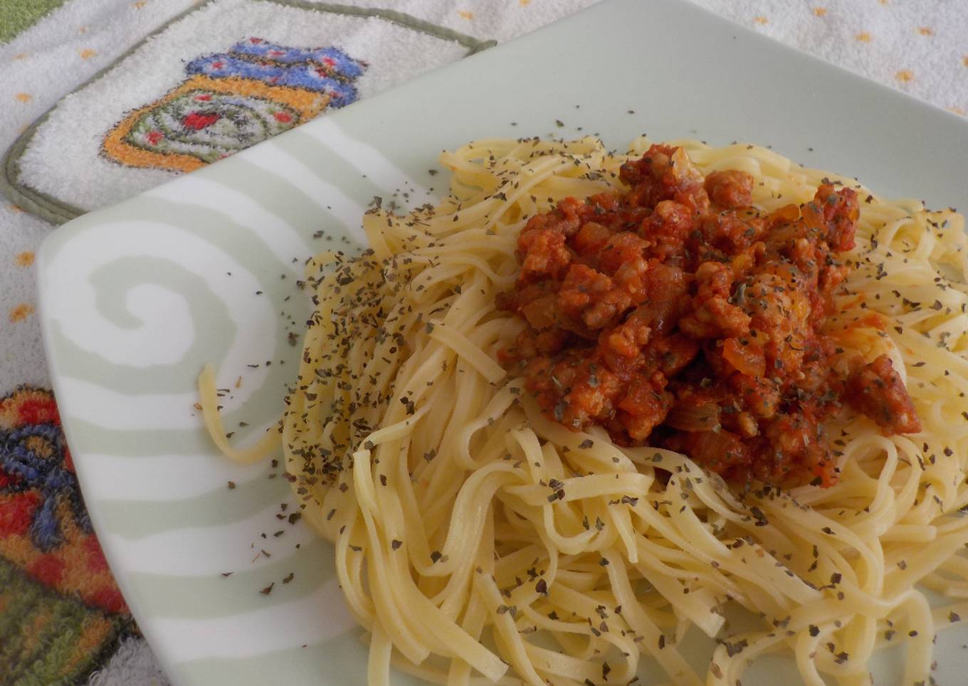 Como tantas cosas, cuando voy por el Hipermercado compro alguna novedad, ésta vez fué esta pasta al huevo "fettuccine a nido" y se me ocurrió cocerla como una pasta y preparar la típica salsa de carne picada. Novedad al punto, procuré que coincida el final de la cocción de la pasta, la salsa caliente y el momento de servir el plato sea el mismo. Muy buena. GXL