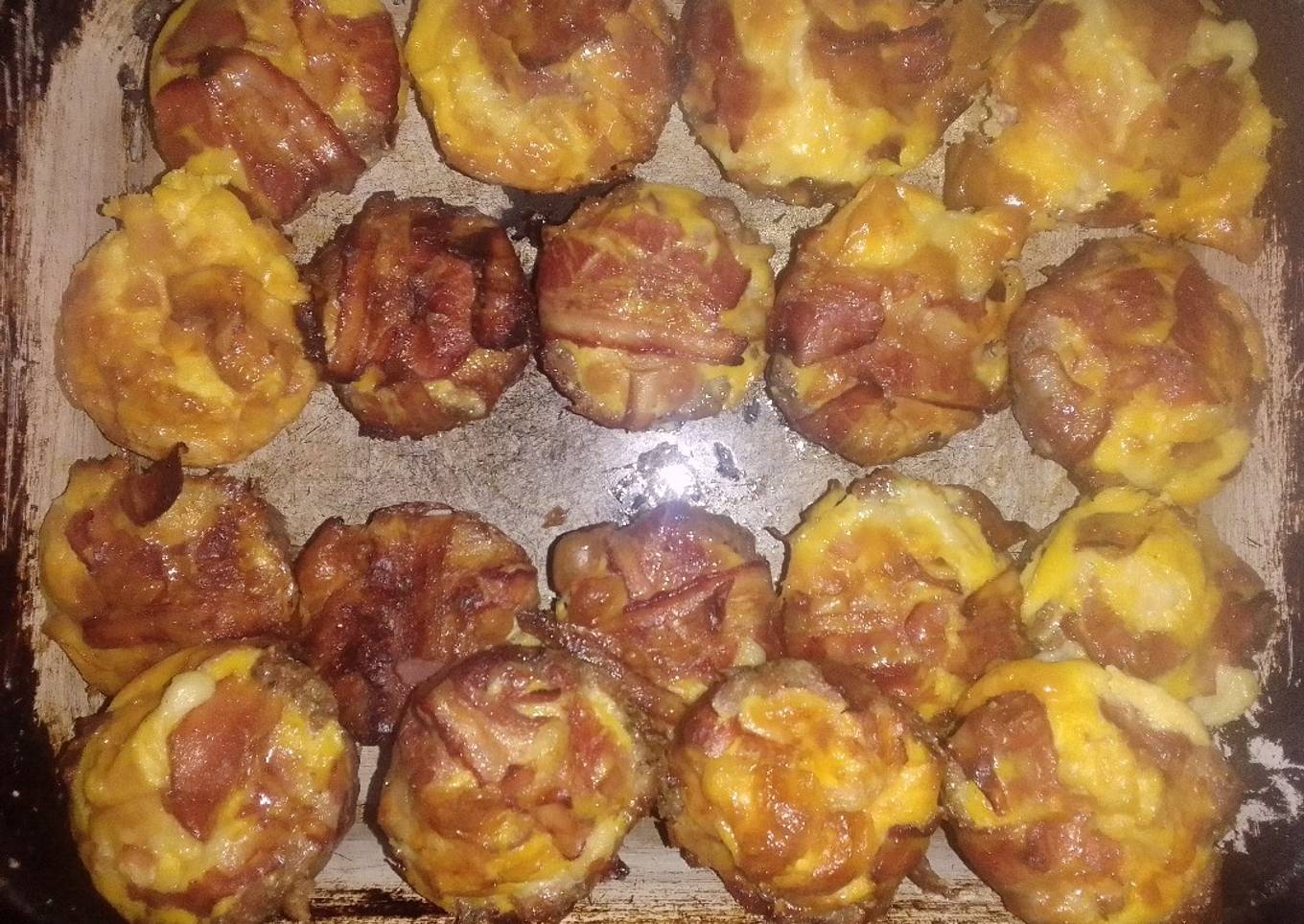 - Con eso rellenando los moldes y con las tiritas de panceta que sobran para afuera del molde tapados y llevarnos al horno presentado hasta que vean que estén listos los pueden acompañas con lo que más les guste