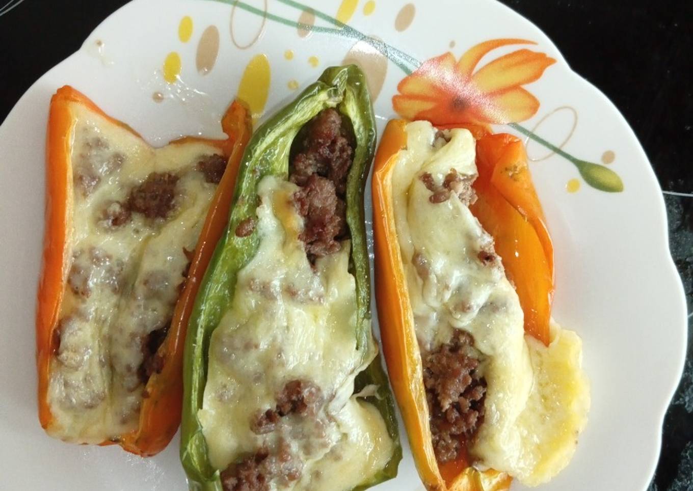 - Dentro de los pimientos se coloca la carne molina semicocida y se lo mete al horno por 15 minutos a 180 grados centígrados.