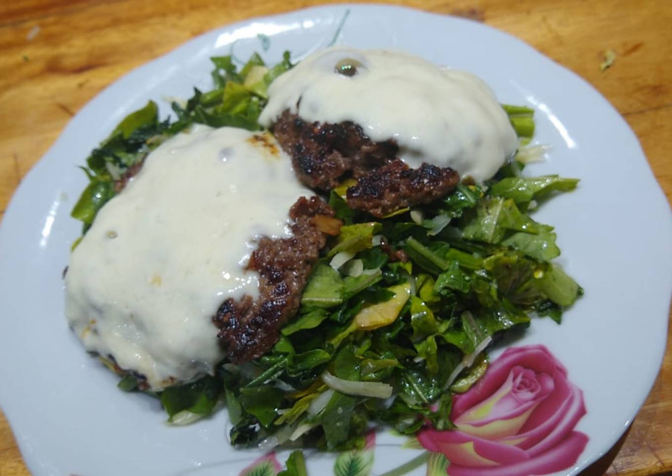 Hey everyone, hope you are having an incredible day today. Today, I will show you a way to prepare a distinctive dish, Hamburguesas caseras a la barbacoa, ensalada: rúcula y parmesano. It is one of my favorites. For mine, I will make it a bit unique. This is gonna smell and look delicious.
