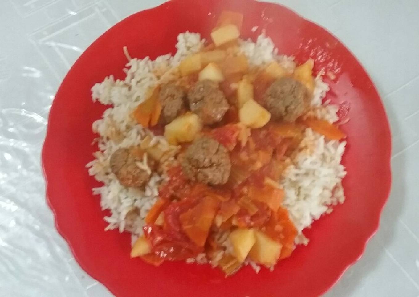 Hey everyone, it's me, Dave, welcome to my recipe site. Today, I will show you a way to prepare a special dish, Arroz con albóndigas de carne con salsa de tomate dulce salada. It is one of my favorites food recipes. For mine, I will make it a little bit tasty. This is gonna smell and look delicious.