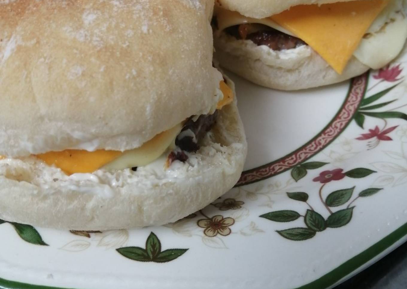 - Ponemos una hamburguesa con el queso ya fundido en una cara