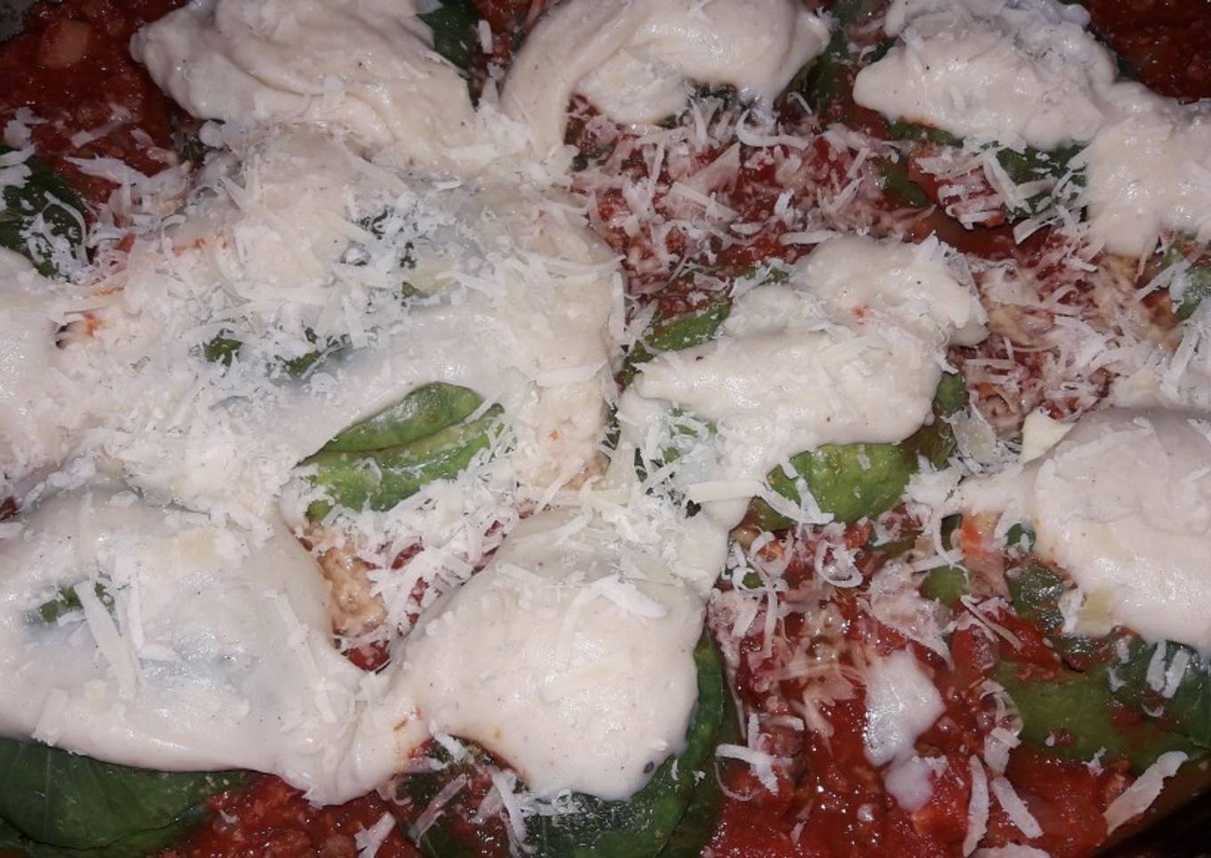 - Luego poner salsa roja entre los zapallitos y sobre ellos