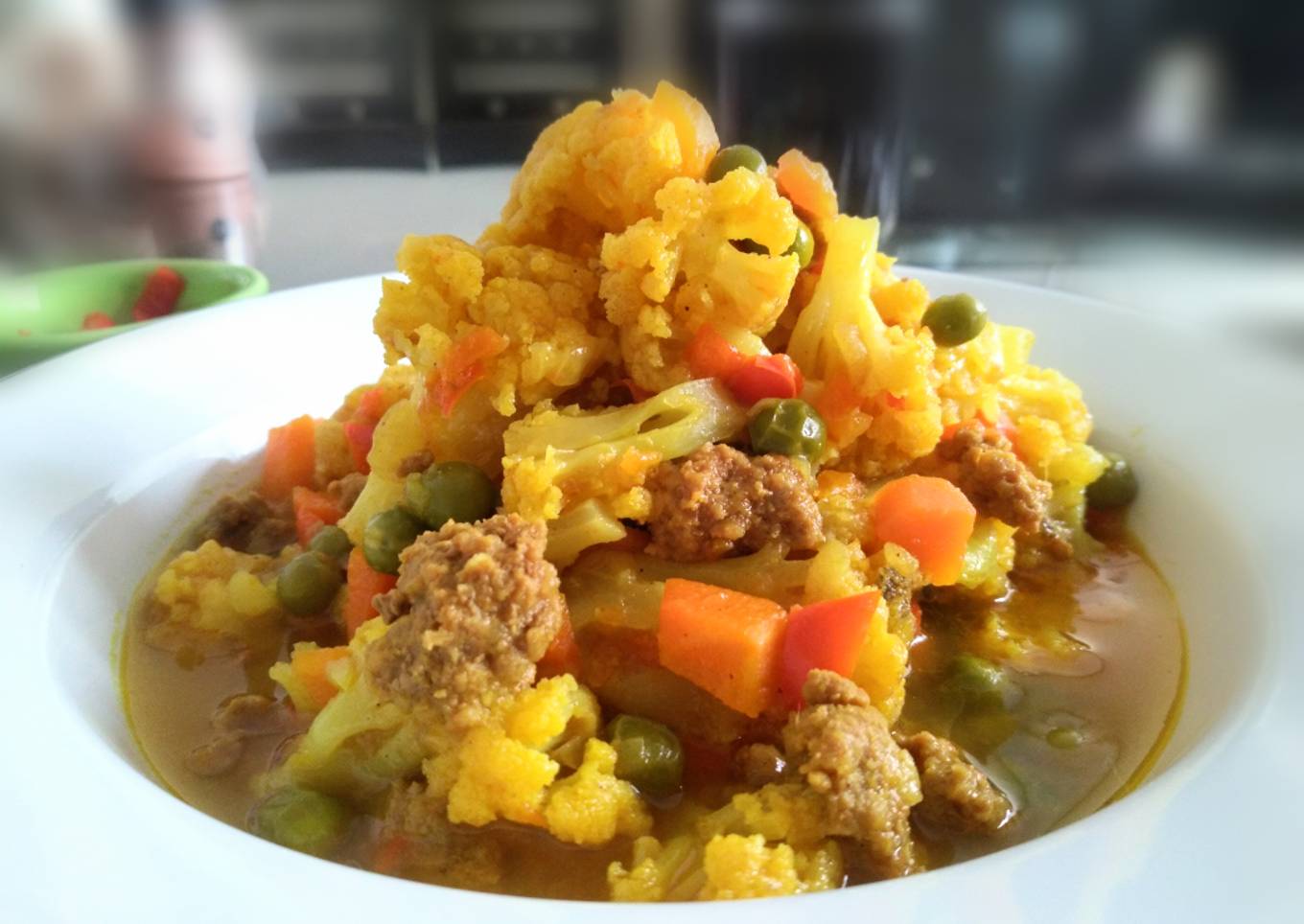 - Luego de ese espacio los trozos de coliflor mezclar bien e incorporar la res y jengibre probar la sal