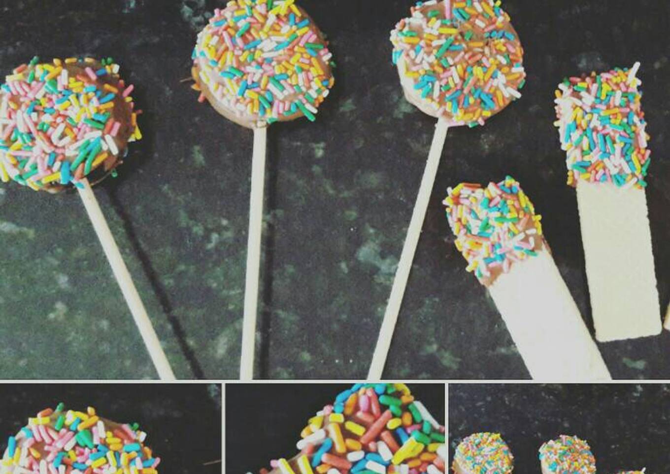 - Derretimos el chocolate a baño María o en micro. Ponemos un poco de chocolate en el palito antes de introducirlo en la galletita para que pegue. Al congelador 5 minutos