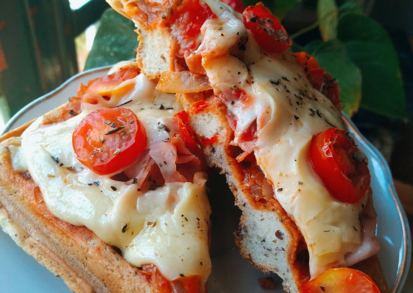 As for the number of servings that can be served to make 🍕Pizza-Waffle Gluten Free ❣️🍕 is 2 Waffles. So make sure this portion is enough to serve for yourself and your beloved family.